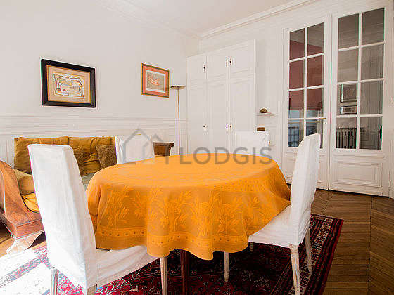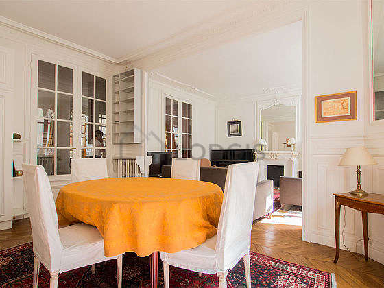 In order to share your meals in a convivial atmosphere during your stay parisian, this apartment offers a great dining room that can welcome up to 6 guests thanks to its sofa, dining table, 6 chair(s), entry way table, floor lamp.