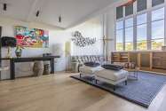 Living roomThis apartment consists of a living room its windows. This living room is furnished and equipped for a comfortable stay: tv, linen, quilt, sofa, dining table, desk, wardrobe, shelves, closet, storage space, cupboard, crockery, 1 chair(s).