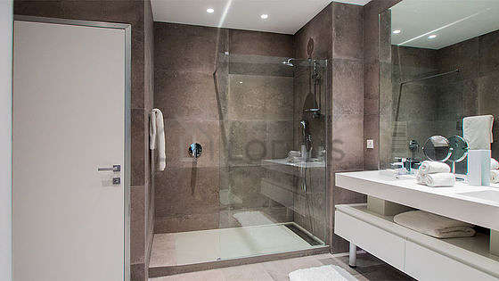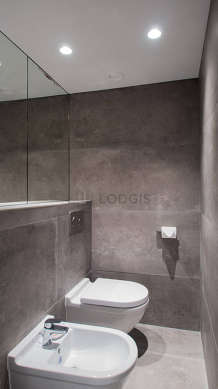 This apartment is equipped with a great bathroom. This bathroom is furnished with all the equipment you need for a comfortable stay: bath towels, separate shower, sink, towel drying radiator. The toilets are separated from the bathroom and located in an independant room.