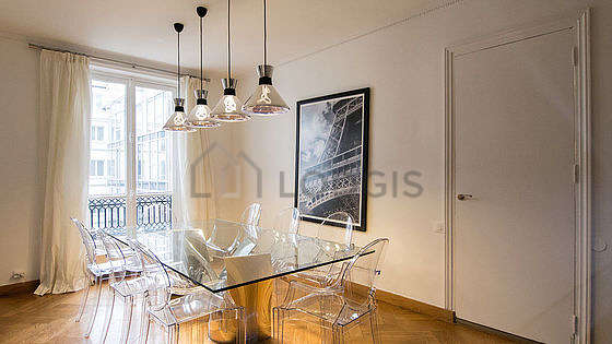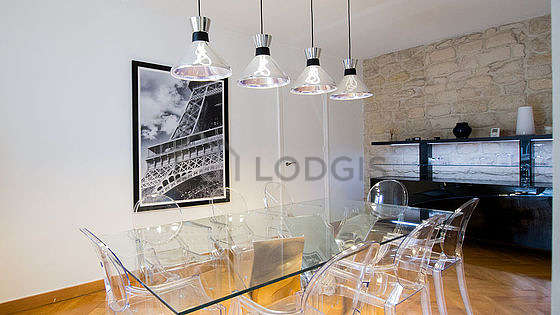 In order to share your meals in a convivial atmosphere during your stay in Paris, this apartment offers a great dining room that can welcome up to 6 guests thanks to its dining table, sideboard, 6 chair(s).