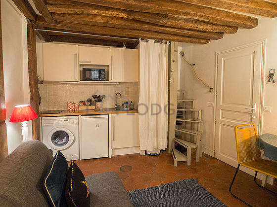 Living roomThis duplex consists of a beautiful living room with a floor tiles floor view on courtyard. This very quiet living room is furnished and equipped for a comfortable stay: sofa, dining table, wooden beams, fireplace, 1 chair(s)1 sofabed(s) of 140cm.