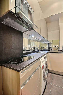 This apartment consists of great kitchen with tile floor and all the essential equipment for your daily life: hob, refrigerator, freezer, oven, microwave oven, combined microwave oven, freezer, extractor hood, toaster, coffee-maker, closet, cupboard, crockery, food processor, bin.