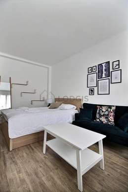 Living roomThis apartment consists of a fabulous living room with wooden floor and its windows. This very quiet living room is furnished and equipped for a comfortable stay: tv, quilt, sofa, desk, shelves, 1 chair(s)1 bed(s) of 140cm.