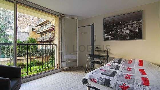 Living roomThis apartment consists of a pleasant living room with wooden floor and its windows and view on courtyard. This quiet living room is furnished and equipped for a comfortable stay: linen, quilt, 1 armchair(s), dining table, desk, 3 chair(s)1 sofabed(s) of 140cm.