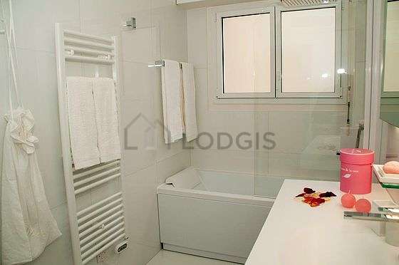 This apartment is equipped with a great bathroom and very bright. This bathroom is furnished with all the equipment you need for a comfortable stay: bath towels, wardrobe, shelves, closet, storage space, cupboard, bath tub, separate shower, hair-dryer, sink, sink, towel drying radiator. The toilets are located in the bathroom.