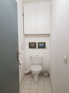 This apartment is equipped with a pleasant bathroom and bright. This bathroom is furnished with all the equipment you need for a comfortable stay: bath towels, storage space, cupboard, bath tub, sink, mirror, towel drying radiator. The toilets are separated from the bathroom and located in an independant room.