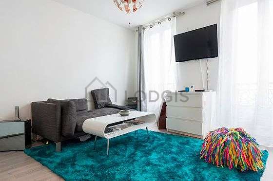 Living roomThis apartment consists of a pleasant living room with wooden floor view on road. This very quiet living room is furnished and equipped for a comfortable stay: tv, linen, quilt, sofa, coffee table, closet, storage space1 murphy bed(s) of 140cm.