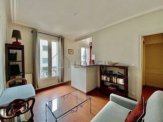 Living roomThis apartment consists of a pleasant living room with wooden floor view on road. This living room is furnished and equipped for a comfortable stay: sofa, dining table, coffee table, bookcase, 1 chair(s), bar1 sofabed(s) of 140cm.