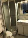 This apartment is equipped with a pleasant bathroom and bright. This bathroom is furnished with all the equipment you need for a comfortable stay: tv, bath towels, dining table, shelves, cupboard, separate shower, hair-dryer, floor lamp, sink, carpet. The toilets are located in the bathroom.