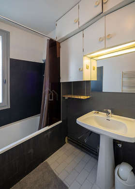 This apartment is equipped with a bathroom. This bathroom is furnished with all the equipment you need for a comfortable stay: cupboard, bath tub, sink. The toilets are separated from the bathroom and located in an independant room.