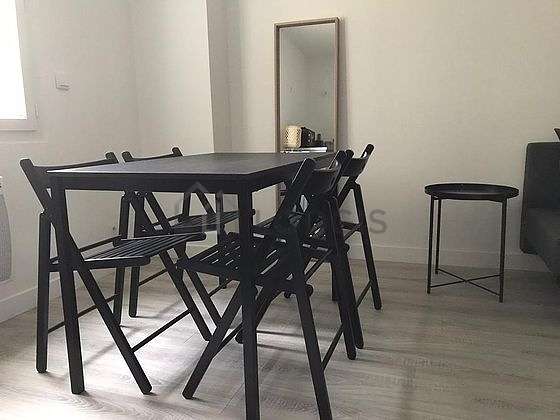 Living roomThis apartment consists of a living room with wooden floor and its windows. This living room is furnished and equipped for a comfortable stay: tv, linen, quilt, sofa, dining table, shelves, closet, storage space, cupboard, crockery, 1 chair(s).