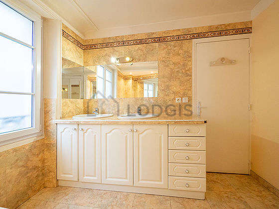 This apartment is equipped with a pleasant bathroom and bright with windows. This bathroom is furnished with all the equipment you need for a comfortable stay: cupboard, bath tub, sink. The toilets are separated from the bathroom and located in an independant room.