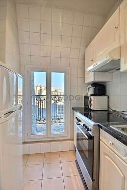 This apartment consists of great kitchen with tile floor and all the essential equipment for your daily life: hob, refrigerator, freezer, oven, microwave oven, shelves, cupboard, crockery.