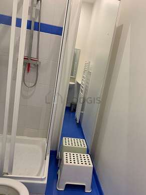 This apartment is equipped with a great bathroom. This bathroom is furnished with all the equipment you need for a comfortable stay: shelves, cupboard, bath tub, sink, mirror. The toilets are separated from the bathroom and located in an independant room.
