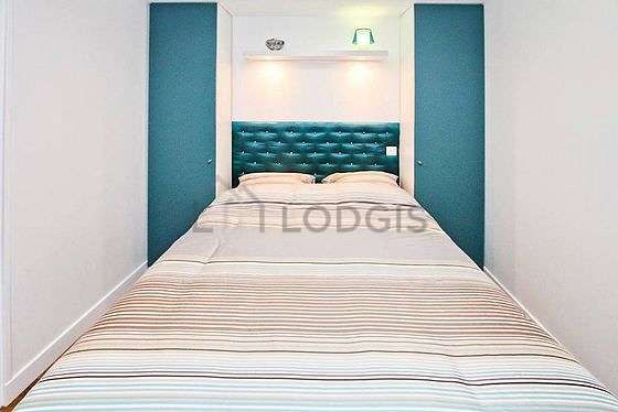 Living roomThis apartment consists of a beautiful living room with wooden floor and its double-glazed windows. This very quiet living room is furnished and equipped for a comfortable stay: tv, refrigerator, sofa, dining table, shelves, cupboard, crockery, 1 chair(s), tv stand, bin1 sofabed(s) of 140cm.