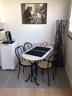 Living roomThis apartment consists of a pleasant living room with wooden floor and its windows. This very quiet living room is furnished and equipped for a comfortable stay: tv, linen, quilt, sofa, 1 armchair(s), dining table, wardrobe, cupboard, crockery, 1 chair(s)1 bed(s) of 150cm.