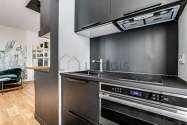 This apartment consists of great kitchen with wooden floor and all the necessary equipment for your daily life: hob, refrigerator, combined microwave oven, freezer, toaster, coffee-maker, crockery, 2 chair(s), bar, bin, ventilator.