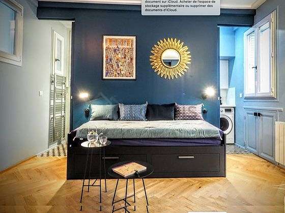 Living roomThis apartment consists of a fabulous living room with wooden floor and its windows. This very quiet living room is furnished and equipped for a comfortable stay: sofa, dining table, coffee table, 1 chair(s)1 sofabed(s) of 150cm.