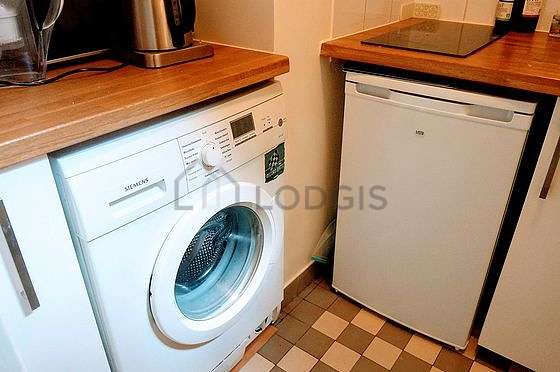 This apartment consists of beautiful kitchen with tile floor and all the essential equipment for your daily life: hob, refrigerator, oven, microwave oven, combined microwave oven, freezer, dining table, wardrobe, shelves, closet, storage space, cupboard, crockery, 1 chair(s).