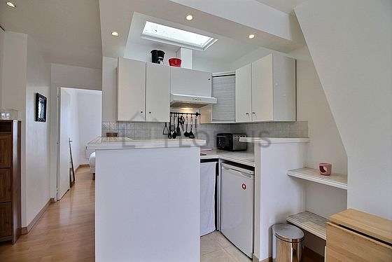 This apartment consists of great kitchen with tile floor and all the necessary equipment for your daily life: hob, refrigerator, combined microwave oven, freezer, toaster, cupboard, crockery.