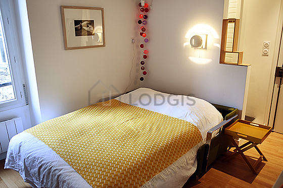 Living roomThis apartment consists of a attractive living room with wooden floor view on garden. This very quiet living room is furnished and equipped for a comfortable stay: tv, linen, quilt, sofa, dining table, wardrobe, shelves, storage space, cupboard, crockery, 1 chair(s)1 sofabed(s) of 140cm.