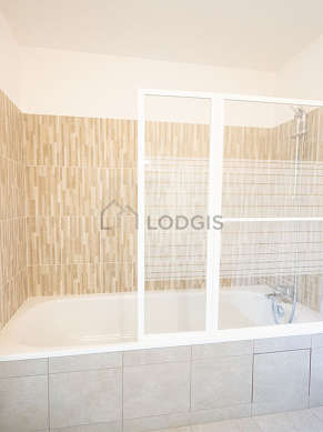This apartment is equipped with a great bathroom and very bright. This bathroom is furnished with all the equipment you need for a comfortable stay: shelves, bath tub, sink, mirror, bin, towel drying radiator, ventilator. The toilets are separated from the bathroom and located in an independant room.