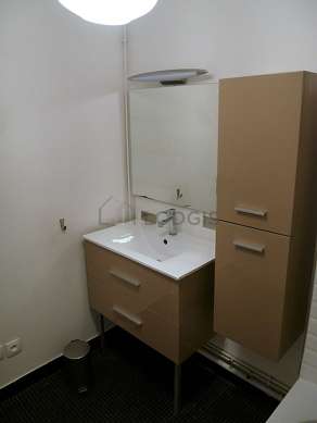 This apartment is equipped with a great bathroom and bright. This bathroom is furnished with all the equipment you need for a comfortable stay: shelves, closet, bath tub, sink, mirror, towel rack, bin. The toilets are separated from the bathroom and located in an independant room.