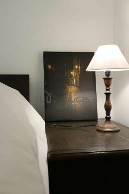 Living roomThis apartment consists of a beautiful living room with wooden floor and its double-glazed windows. This very quiet living room is furnished and equipped for a comfortable stay: tv, sofa, 2 armchair(s), tv stand, mirror, painting.