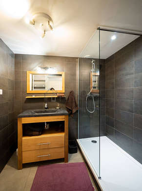 This apartment is equipped with a bathroom. This bathroom is furnished with all the equipment you need for a comfortable stay. The toilets are separated from the bathroom and located in an independant room.