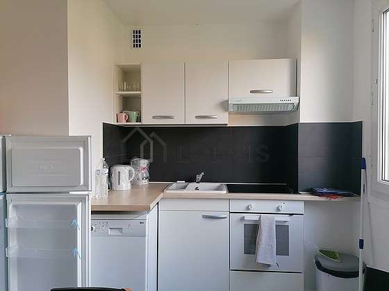 This apartment consists of great kitchen with tile floor and all the essential equipment for your daily life: hob, refrigerator, freezer, oven, microwave oven, extractor hood, toaster, coffee-maker, dining table, shelves, cupboard, crockery, 1 chair(s), bin.