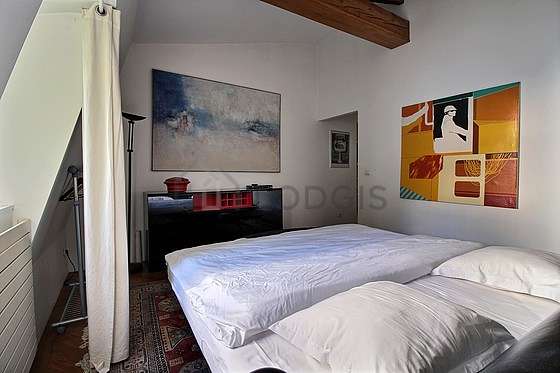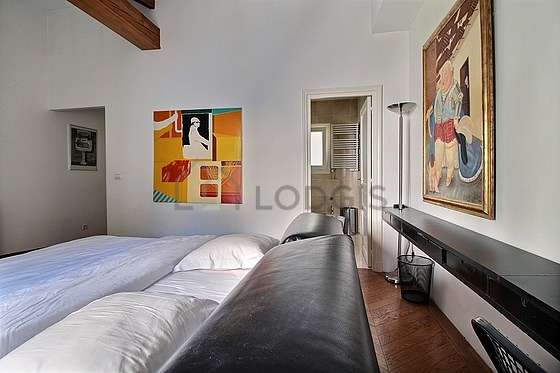 With wooden floor and its windows this fabulous room offre provides the necessary equipment for you to serenely rest during your stay: linen, quilt, desk, shelves, 1 chair(s), painting, carpet1 bed(s) of 160cm.