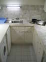 This apartment consists of kitchen with tile floor and all the essential equipment for your daily life: hob, refrigerator, freezer, oven, microwave oven, toaster, kettle, coffee-maker, cupboard, crockery.