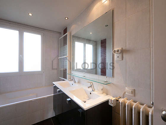 This apartment is equipped with a great bathroom and very bright. This bathroom is furnished with all the equipment you need for a comfortable stay: cupboard, bath tub, separate shower, hair-dryer, sink, bin, towel drying radiator. The toilets are separated from the bathroom and located in an independant room.