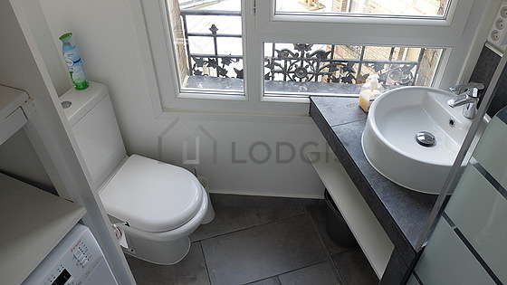 This apartment is equipped with a great bathroom and very bright. This bathroom is furnished with all the equipment you need for a comfortable stay: bath towels, separate shower, hair-dryer, airer, sink, sink, mirror, towel rack, towel drying radiator. The toilets are located in the bathroom.
