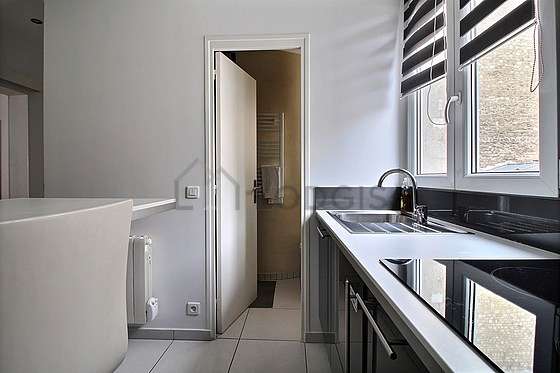 This apartment consists of great kitchen with tile floor and all the necessary equipment for your daily life: hob, refrigerator, freezer, oven, microwave oven, extractor hood, toaster, kettle, coffee-maker, dining table, cupboard, crockery, 1 chair(s).
