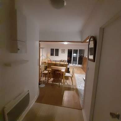 Living roomThis apartment consists of a beautiful living room with wooden floor and its double-glazed windows. This very quiet living room is furnished and equipped for a comfortable stay: tv, sofa, dining table, sideboard, floor lamp.
