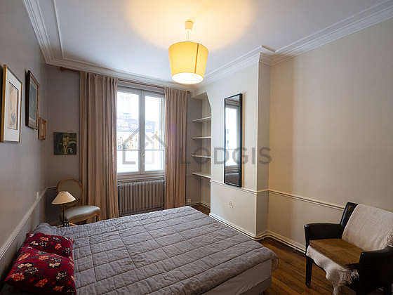 Living roomThis apartment consists of a fabulous living room with wooden floor view on courtyard. This very quiet living room is furnished and equipped for a comfortable stay: tv, quilt, sofa, 1 armchair(s), dining table, coffee table, desk, wardrobe, shelves, closet, storage space, cupboard, crockery, 1 chair(s).