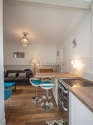 Living roomThis apartment consists of a fabulous living room with wooden floor view on courtyard. This very quiet living room is furnished and equipped for a comfortable stay: sofa, 1 armchair(s), coffee table, storage space1 sofabed(s) of 140cm.