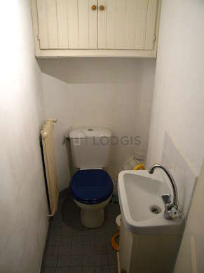 This apartment is equipped with a pleasant bathroom. This bathroom is furnished with all the equipment you need for a comfortable stay: cupboard, sink, mirror, ventilator. The toilets are separated from the bathroom and located in an independant room.