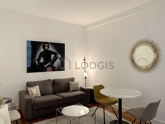 Living roomThis apartment consists of a beautiful living room with wooden floor view on courtyard. This very quiet living room is furnished and equipped for a comfortable stay: sofa, dining table, coffee table, 1 chair(s), stool1 sofabed(s) of 140cm.