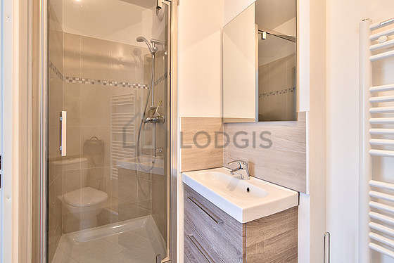 This apartment is equipped with a great bathroom and very bright. This bathroom is furnished with all the equipment you need for a comfortable stay: bath towels, cupboard, separate shower, airer, sink, towel drying radiator, carpet. The toilets are located in the bathroom.