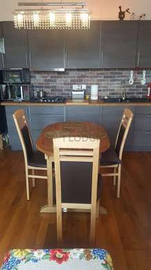 This apartment consists of great kitchen with wooden floor and all the necessary equipment for your daily life: hob, refrigerator, freezer, oven, microwave oven, extractor hood, toaster, kettle, coffee-maker, cupboard, crockery.