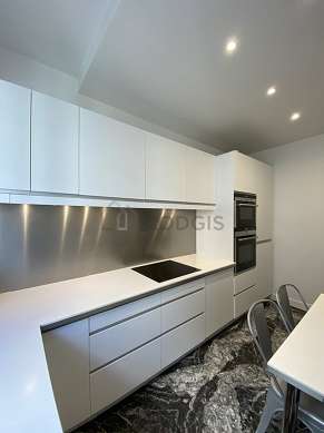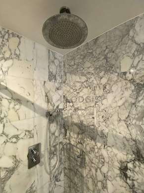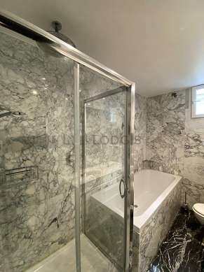 This apartment is equipped with a great bathroom and very bright. This bathroom is furnished with all the equipment you need for a comfortable stay: bath towels, cupboard, bath tub, separate shower, sink, towel drying radiator. The toilets are separated from the bathroom and located in an independant room.