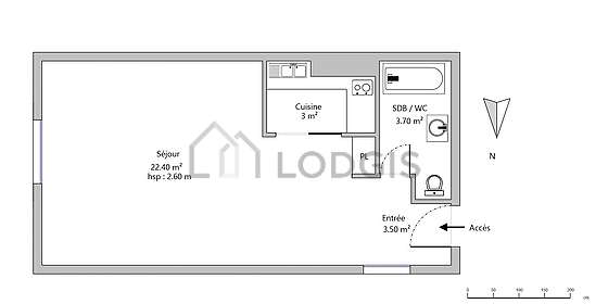 Living roomThis apartment consists of a living room with wooden floor and its windows and view on courtyard. This very quiet living room is furnished and equipped for a comfortable stay: quilt, sofa, dining table, desk, shelves, closet, storage space, 2 chair(s)1 bed(s) of 140cm.