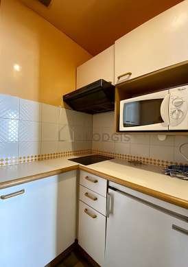 This apartment consists of kitchen and all the essential equipment for your daily life: hob, refrigerator, microwave oven, extractor hood, shelves, cupboard, crockery.