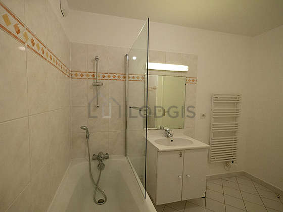 This apartment is equipped with a great bathroom and very bright. This bathroom is furnished with all the equipment you need for a comfortable stay: bath tub, sink. The toilets are separated from the bathroom and located in an independant room.