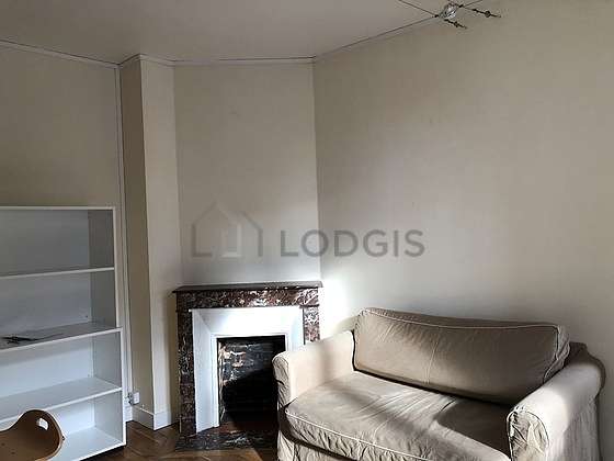 Living roomThis apartment consists of a living room its windows. This living room is furnished and equipped for a comfortable stay: sofa, shelves.