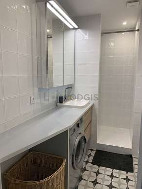 This apartment is equipped with a great bathroom and bright with windows. This bathroom is furnished with all the equipment you need for a comfortable stay: shelves, cupboard, separate shower, sink, towel drying radiator. The toilets are separated from the bathroom and located in an independant room.