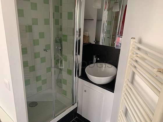 This apartment is equipped with a great bathroom and very bright. This bathroom is furnished with all the equipment you need for a comfortable stay: bath towels, shelves, cupboard, separate shower, hair-dryer, sink, mirror, towel drying radiator. The toilets are located in the bathroom.