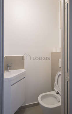 This apartment is equipped with a bathroom. This bathroom is furnished with all the equipment you need for a comfortable stay: bath towels, separate shower, sink, towel drying radiator. The toilets are separated from the bathroom and located in an independant room.